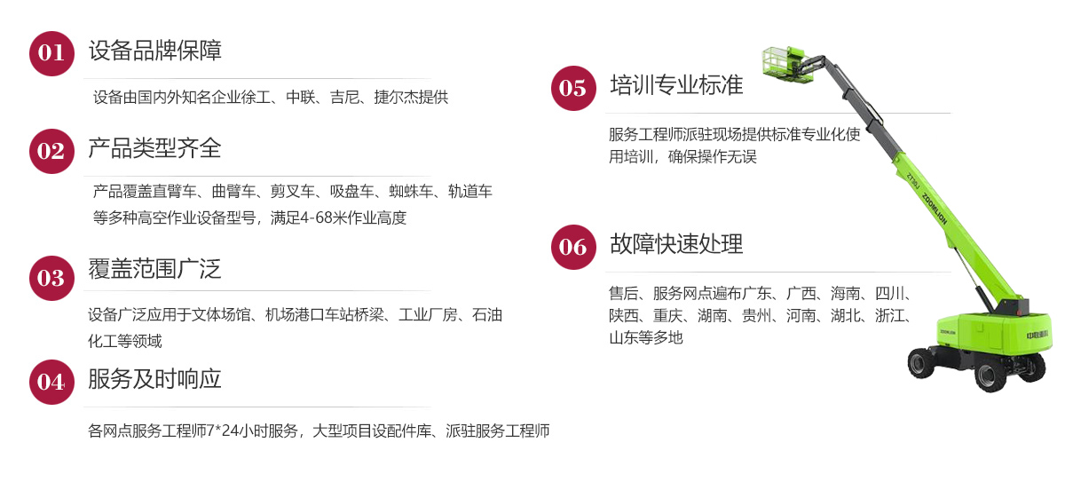 公司在發(fā)展歷程中堅(jiān)定實(shí)行大客戶戰(zhàn)略,致力于以優(yōu)質(zhì)的服務(wù)打造公司的品牌和核心競(jìng)爭(zhēng)力,現(xiàn)已在廣東、廣西、海南、四川、陜西、湖南、重慶、河南、湖北、貴州等多地建立了完善的售后服務(wù)網(wǎng)點(diǎn),24小時(shí)為客戶排憂解難。今后我們將結(jié)合市場(chǎng)需求,不斷創(chuàng)新業(yè)務(wù)模式、優(yōu)化設(shè)備結(jié)構(gòu)、加強(qiáng)運(yùn)營(yíng)管理、擴(kuò)大服務(wù)網(wǎng)點(diǎn)、提升服務(wù)水平,形成以設(shè)備租賃、銷售、二手設(shè)備交易等全方位一站式的全面服務(wù)體系,用高標(biāo)準(zhǔn)高質(zhì)量的服務(wù)讓客戶在和公司合作的過(guò)程中實(shí)實(shí)在在感受到省心、省力、省錢的體驗(yàn),在客戶心目中樹立“家鋒”的品牌形象。